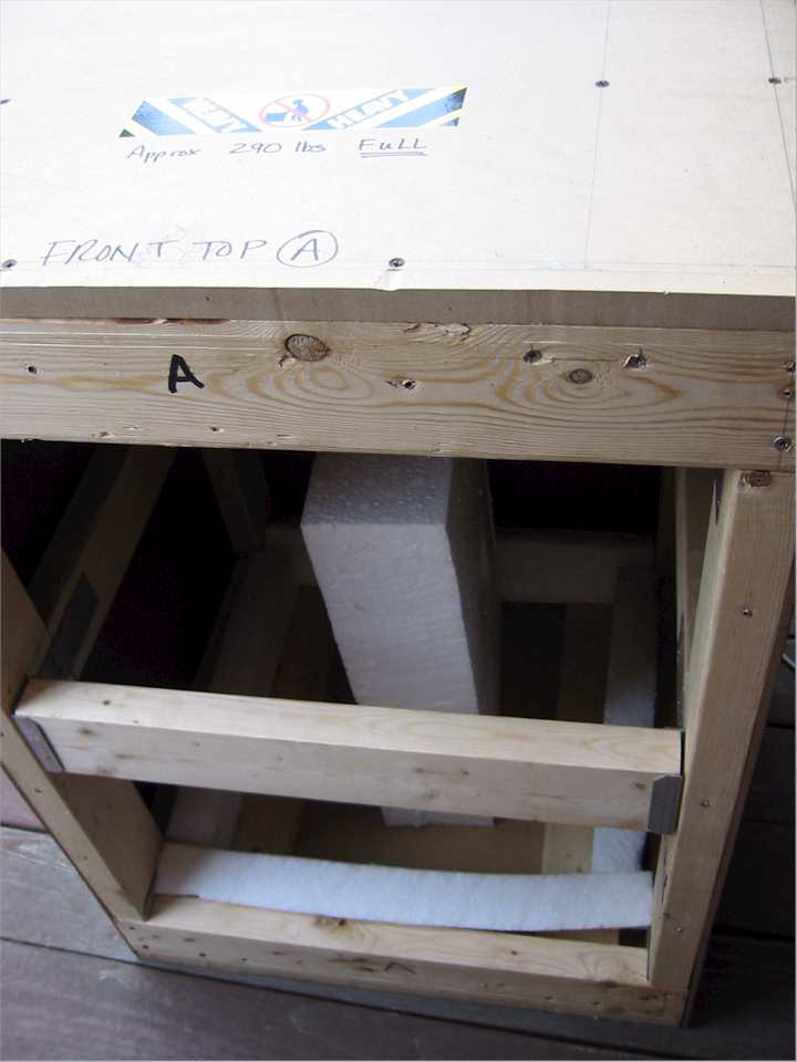 back on the crate using the crate handles, we removed the top part of