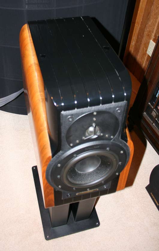 This, and the deepness of the cabinet reveals the philosphy behind the contruction of these speakers: Build a speaker with the wonderful Esotar tweeter and with as much bass as one can possible squeeze into a 50 lb(!) monitor sized box.