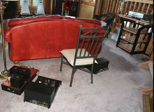 The Audio Note Conquest Silver amps in play. The Audio Aero Capitole amp behind, resting.